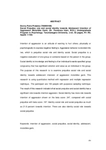 Pratama, Donny Putra (2013) Peran Prasangka Sosial Dan Identitas Sosial Terhadap Intensi Agresi Remaja Anggota Geng Motor X. Skripsi thesis, Universitas Tarumanagara.
