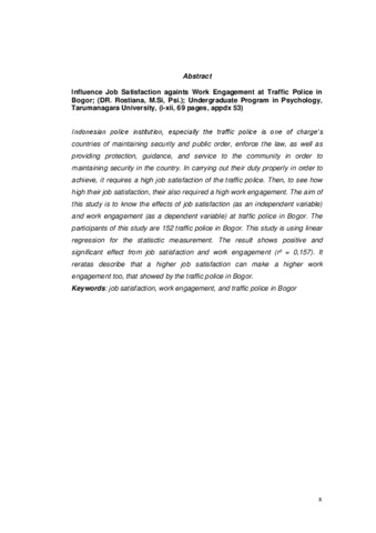 Indonesian police institution, especially the traffic police is one of charge’s countries of maintaining security and public order, enforce the law, as well as providing protection, guidance, and service to the community in order to maintaining security in the country. In carrying out their duty properly in order to achieve, it requires a high job satisfaction of the traffic police. Then, to see how high their job satisfaction, their also required a high work engagement. The aim of this study is to know the effects of job satisfaction (as an independent variable) and work engagement (as a dependent variable) at traffic police in Bogor. The participants of this study are 152 traffic police in Bogor. This study is using linear regression for the statisctic measurement. The result shows positive and significant effect from job satisfaction and work engagement (r² = 0,157). It reratas describe that a higher job satisfaction can make a higher work engagement too, that showed by the traffic police in Bogor.