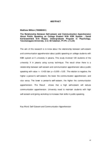 Million, Matthew (2013) Hubungan Harga Diri Dengan Kecemasan Komunikasi Di Muka Umum Pada Mahasiswa Sistem KBK. Skripsi thesis, Universitas Tarumanagara.
