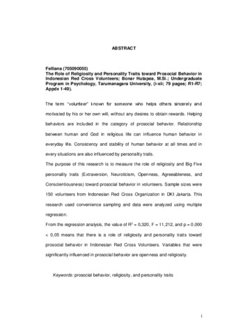 Felliana, Felliana (2013) Peranan Religiusitas Dan Trait Kepribadian Terhadap Perilaku Prososial Relawan Palang Merah Indonesia. Skripsi thesis, Universitas Tarumanagara.