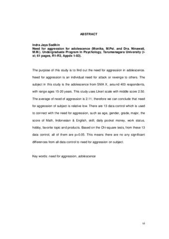 Jaya Sadikin, Indra (2012) Gambaran need for aggression pada remaja. Skripsi thesis, Universitas Tarumanagara.