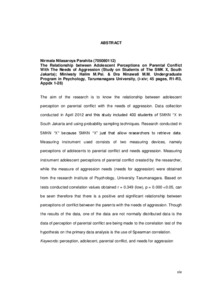 Nilasaroya Parahita, Nirmala (2012) Hubungan antara persepsi remaja terhadap konflik antar orangtua dengan kebutuhan agresi. Skripsi thesis, Universitas Tarumanagara.
