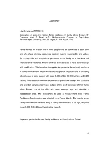 Chrisdiana, Lita (2012) Gambaran Faktor-Faktor Pelindung Dalam Resiliensi Keluarga Betawi. Skripsi thesis, Universitas Tarumanagara.