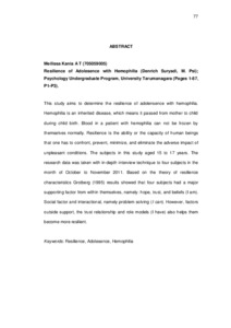 Kania A, Meilissa (2012) Gambaran Resiliensi Pada Remaja Pria Penderita Hemofilia. Skripsi thesis, Universitas Tarumanagara.