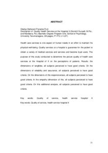 Health care services is one aspect of human needs in an effort to maintain his physical well-being. Quality services at a hospital a guarantee for the patient to obtain a variety of medical services and services and become loyal users. The purpose of this study conducted to determine the picture quality of health care services at the Hospital of X on the perceptions of patients. Results: the dimensions of tangibles, all subjects perceived to have good criteria. On the dimensions of reliability and assurance, all subjects perceived to have good criteria. On the dimensions of this responsiveness, all subjects perceived to have good criteria. In the empathy dimension of this, all subjects perceived to have good criteria. On this additional analysis, all subjects perceived to have good criteria.