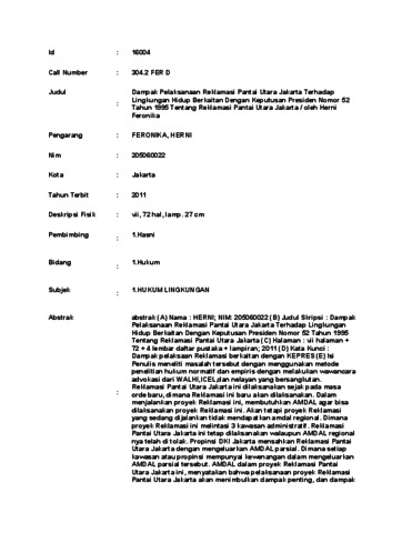 Tentang Reklamasi Pantai Utara Jakarta (C) Halaman : vii halaman +