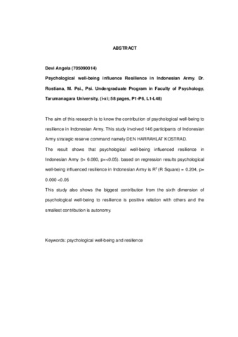 "The purpose of this study was to determine the effect of psychological well-being on resilience on Army Members. The study involved 146 participants from DEN HARRAHLAT KOSTRAD.