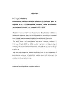 Angela, Devi (2014) Pengaruh Psychological Well-Being Terhadap Resilience Pada Anggota TNI-AD. Skripsi thesis, Universitas Tarumanagara.