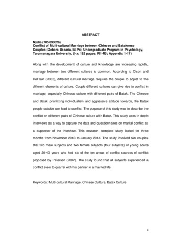 Nydia, Nydia (2014) Gambaran Konflik Pada Pernikahan Beda Budaya Tionghoa Dengan Batak. Skripsi thesis, Universitas Tarumanagara.