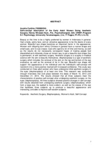 Beauty at this time to be a highly preferred by women in Indonesia in general. Had a body, pretty face, and an attractive appearance to be the desire of every woman. Beautiful eye shape becomes an important factor in the appearance. Women with offspring born ethnic Chinese in general have a narrow shape and small eyes, and no eye crease. Care who spend a lot of time and money, as well as the results do not necessarily correspond hopes of making people feel dissatisfied and ultimately chose an instant way to get a beautiful eye shape that is permanent, ie with aesthetic surgery. Aesthetic surgery is a surgery in medical science with the aim to beautify themselves. Blepharoplasty is a type of aesthetic surgery which includes the removal of the skin on the top and bottom of the eye excessive, as well as the removal of fat in the eye. Beautiful eye shape will support the appearance of the individual and the individual's self-concept will transform into a more positive marked with increased confidence. This study was conducted on three adult women who have undergone initial aesthetic surgery in the eyes (blepharoplasty) of at least one time. This research was conducted through interviews that took place between the dates of March 16, 2013 until December 21, 2013. The results showed that all three subjects meet the characteristics of positive self-concept after undergoing aesthetic surgery on the eyes (blepharoplasty). All three subjects showed positive changes in self-concept with results obtained from undergoing aesthetic surgery (blepharoplasty), which form a large eye, the eyeball is more evident, as well as the crease of the eye that facilitates three subjects up to produce a beautiful appearance and interesting, and able to improve self-esteem subjects.
