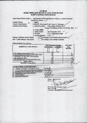 Lerbin R. Aritonang, review (2015) Review 23 :Lerbin R. Aritonang, Joyce A. Turangan. Review : ” Application Of Planned Behavior Theory To Explain Students’ Intention - To Smoke “ (24). pp. 1-15.