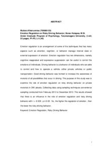 Khairunnisa, Mutiara (2014) Peran Regulasi Emosi Terhadap Perilaku Mengemudi Berisiko Pada Pengendara Mobil Pribadi Di DKI Jakarta. Skripsi thesis, Universitas Tarumanagara.