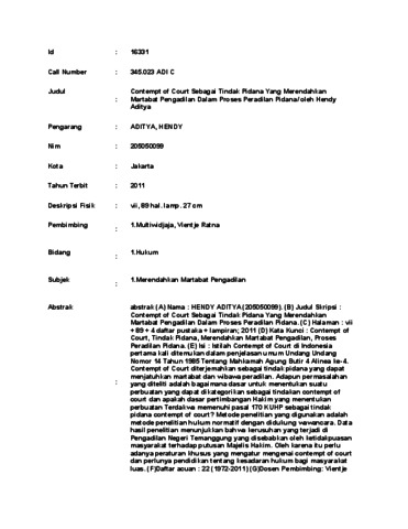 + 89 + 4 daftar pustaka + lampiran; 2011 (D) Kata Kunci : Contempt of
