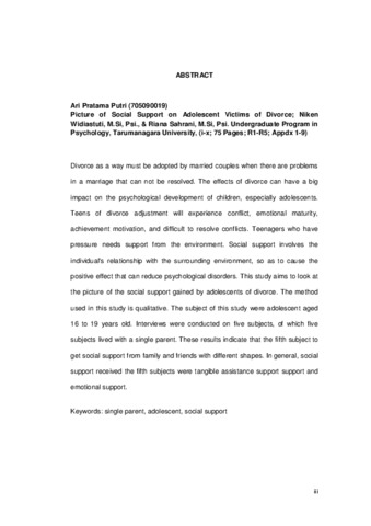 Putri, Ari Pratama (2014) Gambaran Dukungan Sosial Pada Anak Remaja Dari Orangtua Tunggal (Single Parent) Yang Bercerai. Skripsi thesis, Universitas Tarumanagara.