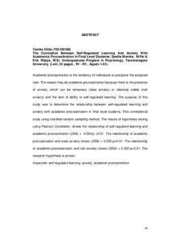 Oktia, Vanika (2014) Hubungan Antara Self Regulated Learning Dan Kecemasan Dengan Prokrastinasi Akademik Pada Mahasiswa Tingkat Akhir. Skripsi thesis, Universitas Tarumanagara.