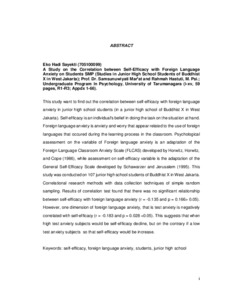 Sayekti, Eko Hadi (2014) Hubungan Antara Self Efficacy Dengan Foreign Language Anxiety Pada Siswa SMP (Studi Pada SIswa SMP Buddhis X di Jakarta Barat). Skripsi thesis, Universitas Tarumanagara.