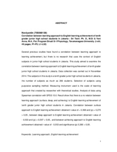 Noviyantin, Noviyantin (2014) Hubungan antara learning approach dengan prestasi belajar bahasa Inggris pada siswa SMP “X” di Jakarta. Skripsi thesis, Universitas Tarumanagara.