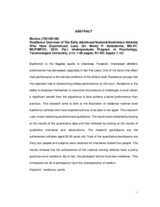 Monica, Monica (2014) Gambaran resiliensi atlet Bulutangkis Nasional dewasa awal yang pernah mengalami kekalahan. Skripsi thesis, Universitas Tarumanagara.