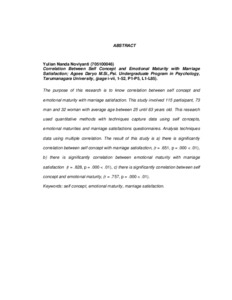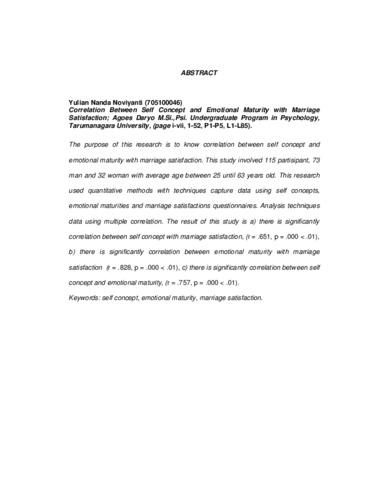 Noviyanti, Yulian Nanda (2015) Hubungan antara konsep diri dan kematangan emosi dengan kepuasan perkawinan. Skripsi thesis, Universitas Tarumanagara.