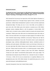 Siahaan, Erickson (2015) Dampak Pelatihan Musik Perkusi Djembre Untuk Perkembangan Motorik Kasar Anak ASD. Skripsi thesis, Universitas Tarumanagara.
