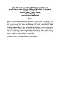 Laurensia, Michelle (2013) Gambaran Kecemasan menghadapi Tuntutan Pernikahan Heteroseksual dari Orangtua pada Individu Dewasa Awal dengan Orientasi Homoseksual. Skripsi thesis, universitas Tarumanagara.