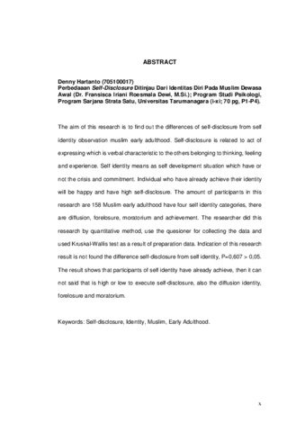 Hartanto, Denny (2016) Perbedaan self-disclosure ditinjau dari identitas diri pada muslim dewasa awal. Skripsi thesis, universitas Tarumanagara.