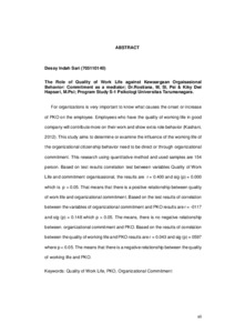 Indah Sari, Dessy (2016) Peranan kualitas kehidupan kerja terhadap perilaku kewargaan organisasional: komitmen organisasional sebagai mediator. Skripsi thesis, Universitas Tarumanagara.