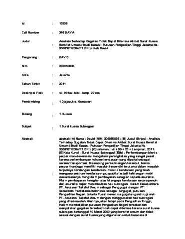 350/PDT/2004/PT.DKI). (C)Halaman : vii + 99 + 25 + Lampiran, 2011.