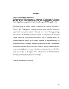 Rikin, Jessica Febrianti (2016) Gambaran penyesuaian diri pada mahasiswa baru di Universitas X. Skripsi thesis, Universitas Tarumanagara.