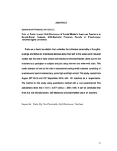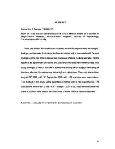 Prawira, Samantha P (2016) Peran traits terhadap self disclosure pengguna media sosial pada guru. Skripsi thesis, Universitas Tarumanagara.