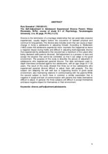 | Uncontrolled Keywords: | perceraian, penyesuaian diri, remaja. |