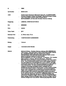 abstrak (A) Nama : Christian Oktorico Limbong; NIM: 205060002 (B)Judul Skripsi : ANALISIS SURAT KEPUTUSAN MAHKAMAH AGUNG