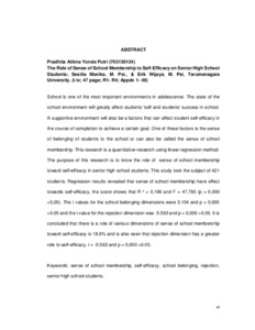 Putri, Pradhita Atikna Yonda (2017) Peran sense of school membership terhadap self efficacy pada siswa SMA. Skripsi thesis, Universitas Tarumanagara.