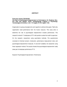 Annisa, Farah Ayu (2017) Peran pemberdayaan psikologis terhadap kinerja. Skripsi thesis, Universitas Tarumanagara.