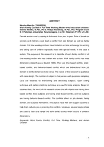 Maretha, Marsha (2016) Gambaran work family conflict pada ibu bekerja full time dan memiliki anak penyandang autisme. Skripsi thesis, Universitas Tarumanagara.