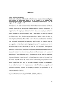Verdina, Annisa (2016) Hubungna kualitas kehidupan kerja terhadap kinerja berdasarkan kesesuaian minat terhadap pekerjaan (Studi pada karyawan Bank X). Skripsi thesis, Universitas Tarumanagara.