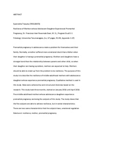 Trasysty, Syanindita (2016) Gambaran resiliensi ibu dewasa madya dengan remaja putri yang mengalami kehamilan pranikah. Skripsi thesis, Universitas Tarumanagara.