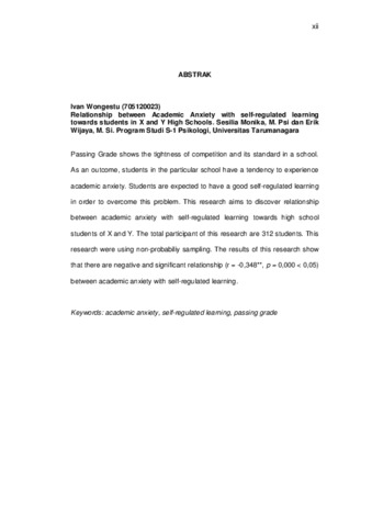 Wongestu, Ivan (2016) Hubungan antara kecemasan akademis dengan self-regulated learning pada siswa SMA yang memiliki passing grade tinggi. Skripsi thesis, Universitas Tarumanagara.