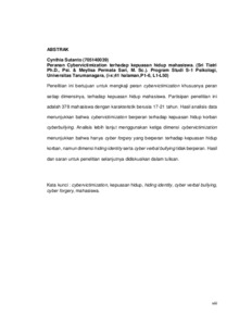 "This research aims to examine the role of cybervictimization, expecially the role each dimension of cybervictimization to the satisfaction of student life.