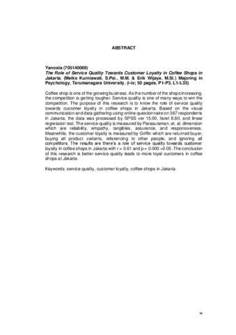 Yanosta, Yanosta (2018) Peran Kualitas Layanan terhadap Loyalitas Pelanggan Coffee Shop di Jakarta. Skripsi thesis, Universitas Tarumanagara.