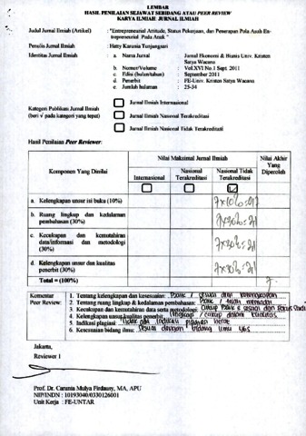 Hetty Karunia Tunjungsari, Reviewer (2011) Review B4. Hetty Karunia Tunjungsari. Review. Entrepreneurial Attitude, Status Pekerjaan, dan Penerapan Pola Asuh Entrepreneurial Pada Anak, XVI (1). pp. 25-34. ISSN 1979-6471