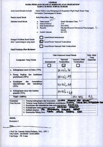Sofia Prima Dewi, Review and Keni Keni, Review (2012) Review B2 . Sofia Prima Dewi, Keni. Review. Faktor-Faktor yang Mempengaruhi Kepatuhan Wajib Pajak Dosen Tetap Universitas Tarumanagara di Jakarta, 16 (3). pp. 461-474. ISSN 1410-3591