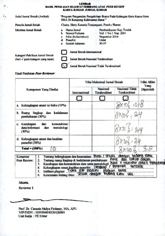 Chairy, Reviewer and Hetty Karunia Tunjungsari, Reviewer and Franky Slamet, Reviewer (2014) Review B. Chairy, Hetty Karunia Tunjungsari, Franky Slamet. Review. "Program Pengenalan Pengelolaan Bisnis Pada Kalangan Guru Kasus Guru - SMA Di Ketapang Kalimantan Barat ”, 1 (1). pp. 30-37. ISSN 2407-1773
