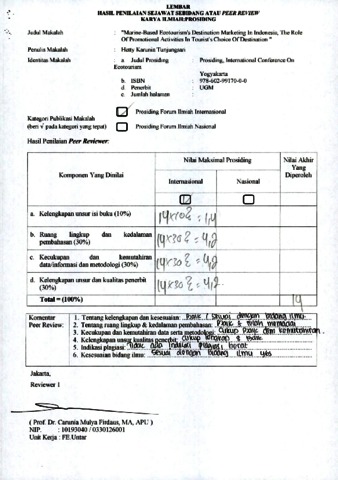 Hetty Karunia Tunjungsari, Reviewer (2011) Review B12. Hetty Karunia Tunjungsari. Review. "Marine-Based Ecotourism's Destination Marketing In Indonesia, The Role Of Promotional Activities In Tourist's Choice Of Destination ". ISSN 978-602-99170-0-0