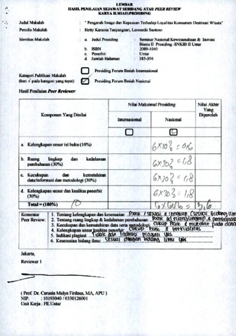 Hetty Karunia Tunjungsari, Reviewer and Leonardo Santoso, Reviewer (2012) Review B17. Hetty Karunia Tunjungsari, Leonardo Santoso. Review. " Pengaruh Image dan Kepuasan Terhadap Loyalitas Konsumen Destinasi Wisata". pp. 385-394. ISSN 2089-1040