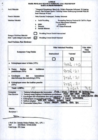 Hetty Karunia Tunjungsari, Reviewer and Tommy Setiawan, Reviewer (2013) Review B20. Hetty Karunia Tunjungsari, Tommy Setiawan. Review. " Pengaruh Pengalaman Masa Lalu, Prilaku Pencarian Informasi Di Jejaring Umum, Dan Persepsi Resiko Terhadap Intensi Berkunjung Kembali Pada Sebuah Destinasi Wisata”. ISSN 2338-994X