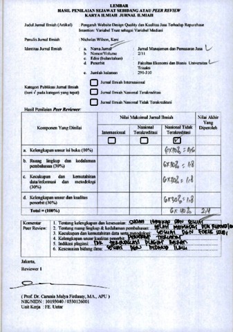 Nicholas Wilson, review and Keni Keni, Review Review B13. Nicholas Wilson, Keni. Review. Pengaruh Website Design Quality dan Kualitas Jasa Terhadap Repurchase Intention: Variabel Trust sebagai Variabel Mediasi, 11 (2). pp. 291-310. ISSN 2442-9732 (Online), 0216-3780 (print)