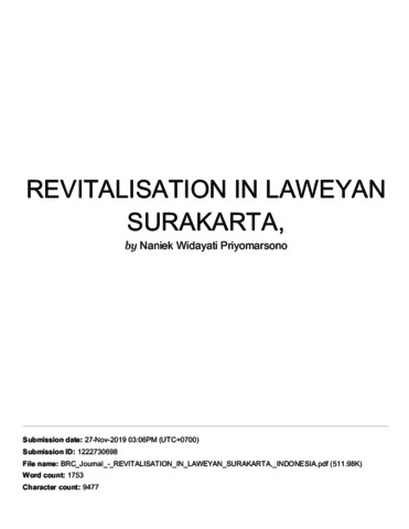 TURNITIN - REVITALISATION IN LAWEYAN SURAKARTA,.pdf Download (2MB) | Preview |