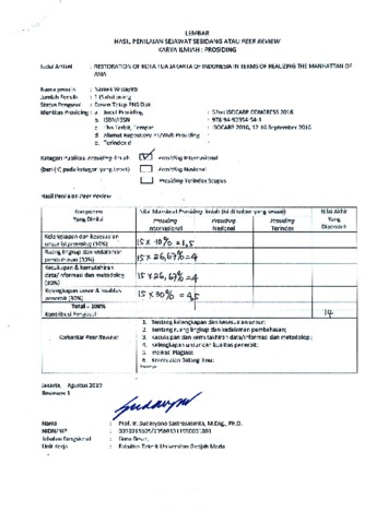 Priyomarsono, Naniek Widayati Peer Review "Restoration of Kota Tua Jakarta of Indonesia in Terms of Realizing The Manhattan of Asia". Peer Review.