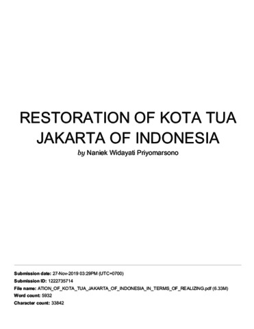 Turnitin - RESTORATION OF KOTA TUA JAKARTA OF INDONESIA.pdf Download (6MB) | Preview |